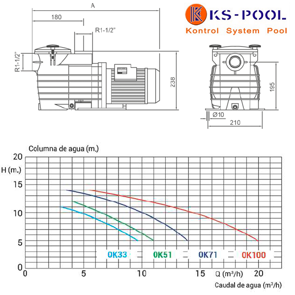 Bomba para piscinas marca KRIPSOL, modelo OK 100 (1,00cv)