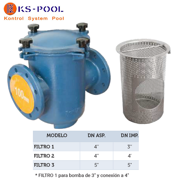 Prefiltro para bombas industriales de piscinas, embalses en fundición, para el filtrado de solidos en suspensión.