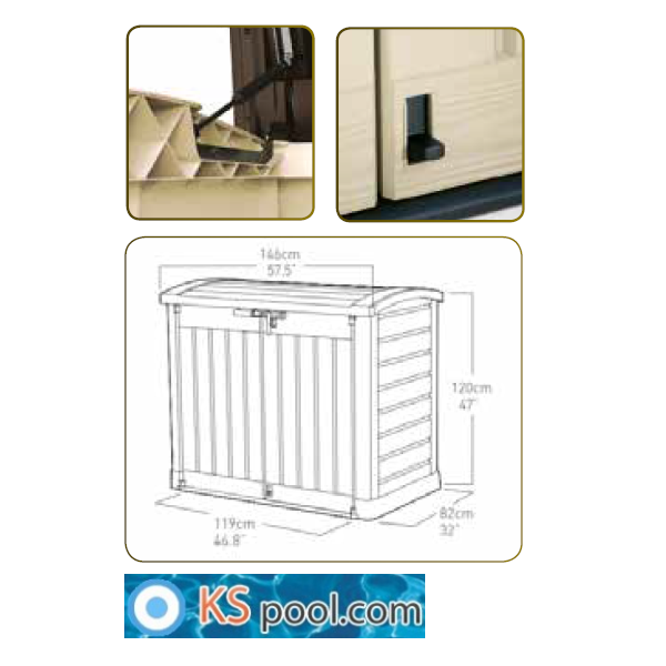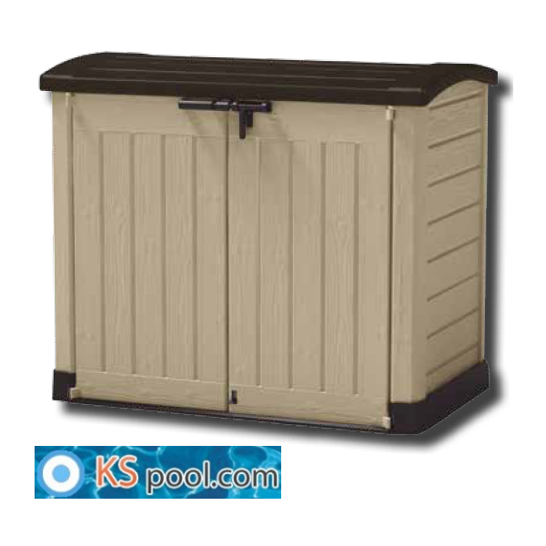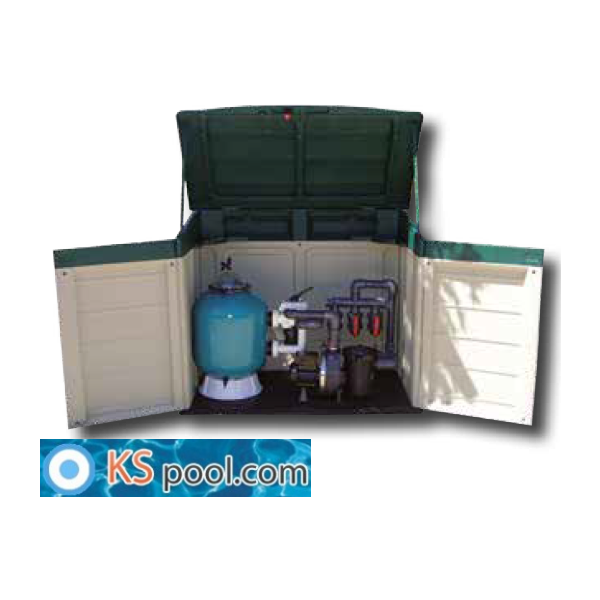 Caseta elevada de depuración vacio para piscinas, imitacion a madera, total accesibilidad para manejar el equipo de filtracion...