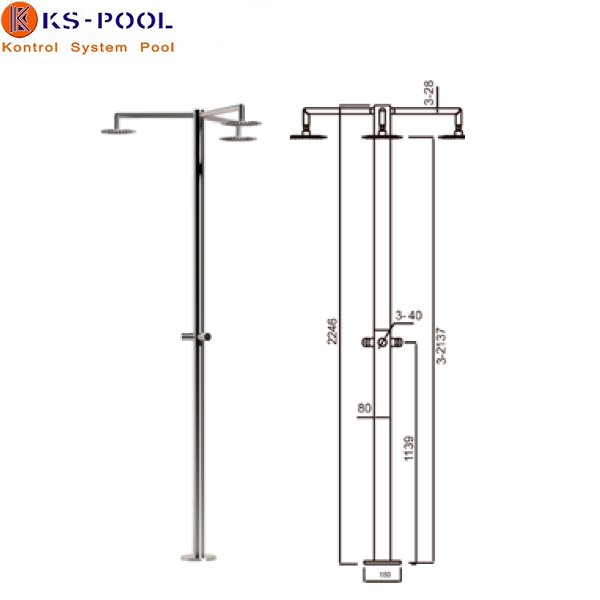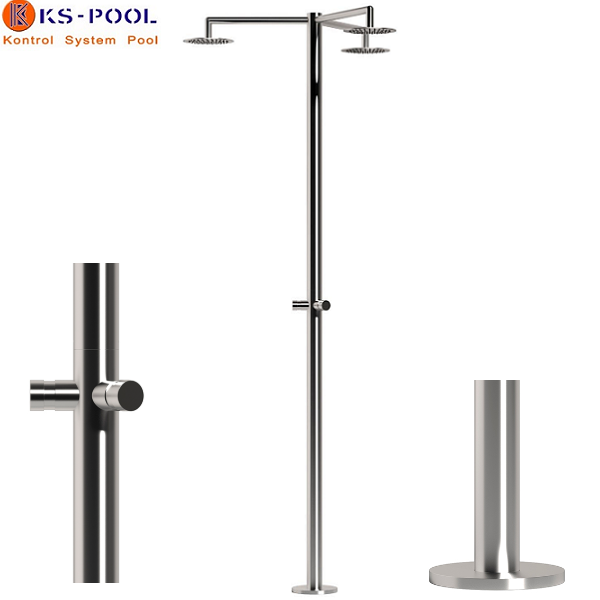 Ducha piscina publica triple / tres rociadores con temporizador aisi 316L.
