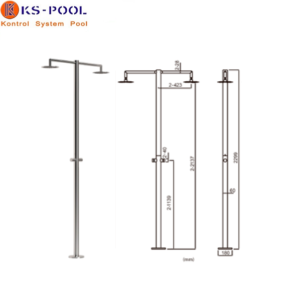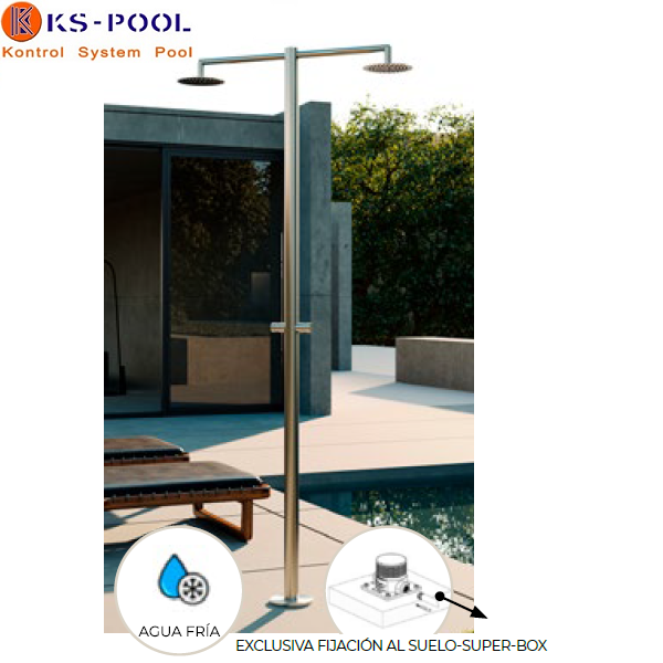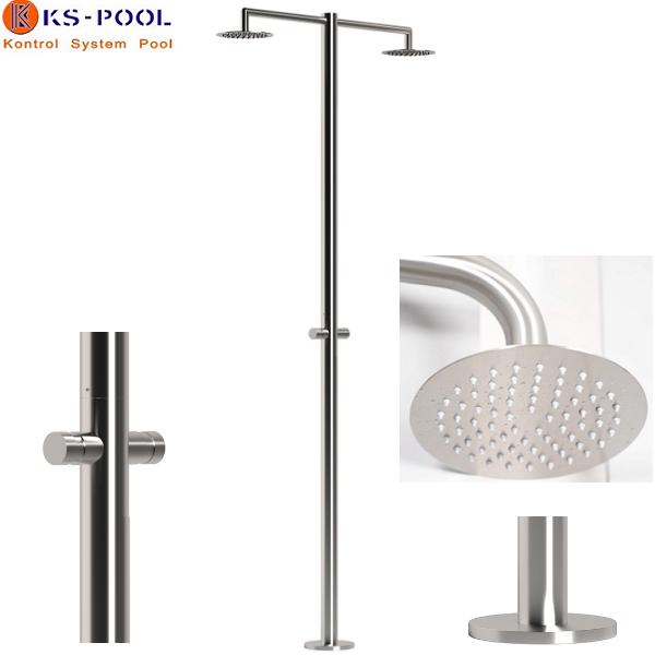 Ducha piscina publica doble / dos rociadores con temporizador aisi 316L.