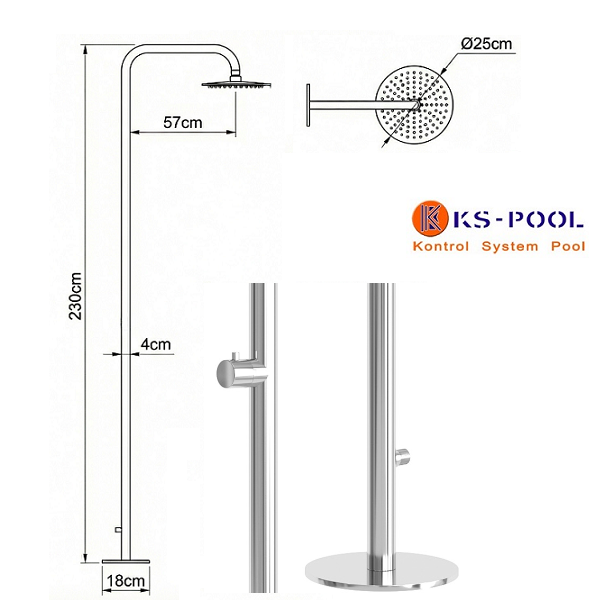 Ducha piscina de diseño en acero inoxidable aisi 316L