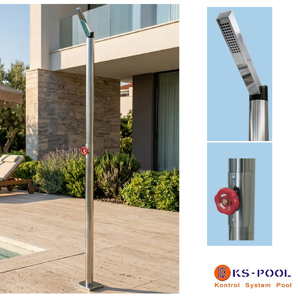 Ducha de piscina con maneta giratoria en acero inoxidable aisi316L calidad marina.