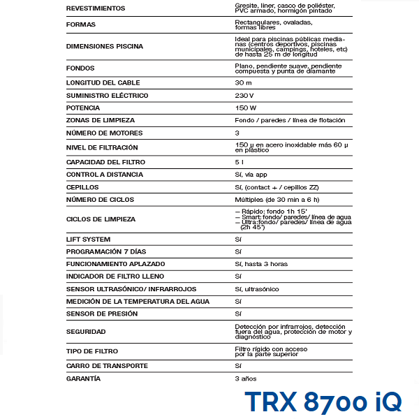 Limpiafondos Robot Zodiac Vortrax TRX 8700 iQ piscinas, limpia el fondo, las paredes y la línea de flotación.
