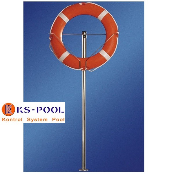 Soporte pie en acero inoxidable mas aro salvavidas completo para piscina publica o privada.